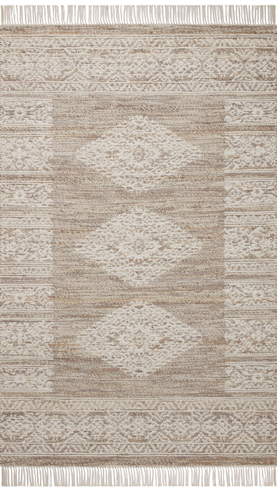 The Rivers Collection by Angela Rose x Loloi is a modern flatweave area rug with a reversible design featuring symmetrical motifs. Woven of wool, cotton, and jute, Rivers combines natural materials with an airy, natural aesthetic. The soft colors of the rug create a watercolor effect that adds artful depth to the neutral palette. Made in India and GoodWeave-certified, ensuring our commitment to ethical production and the support of weavers’ communities.