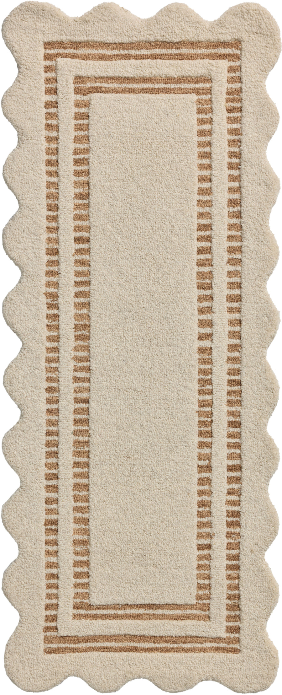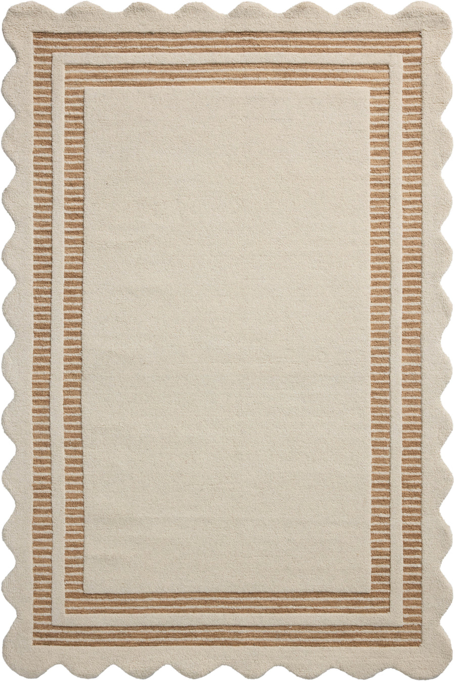 The Scottie Collection from Chris Loves Julia x Loloi is a hand-tufted wool area rug with a playful scalloped edge and lower-pile, striped border for a touch of structure. The rug’s overall pile is thick and plush, available in easygoing earth tones and neutral colorways. This collection is hand-tufted of 100% wool in India and Goodweave-certified, ensuring our commitment to ethical production and the support of weavers’ communities. Some shedding is expected and a natural characteristic of wool rugs; we recommend vacuuming frequently without a beater bar.